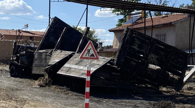 İlçemiz Şıhlar Mahallesi’nde plakası henüz belirlenemeyen park halindeki saman yüklü kamyon yanarak küle dönüştü. Kamyondan dumanlar çıktığını gören çevre sakinleri, durumu 112 Acil Çağrı Merkezine bildirdi. İhbar üzerine bölgeye sevk edilen itfaiye ekipleri yangını söndürmek için hummalı çalışma başlattı. Rüzgarın etkisiyle dorsede başlayan yangın kısa sürede kamyonu sardı. Kamyonun yangından dolayı kullanılamaz hale geldiği olayla ilgili adli soruşturma başlatıldığı ifade edildi. Diğer taraftan yangının büyük maddi hasara yol açtığı öğrenildi.